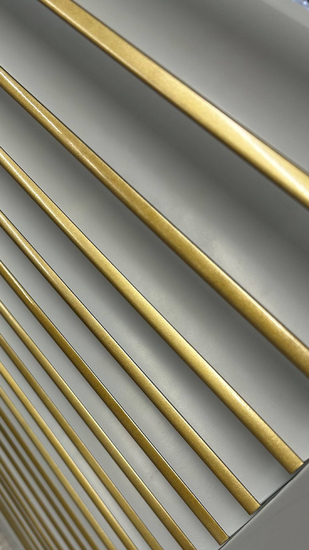 Available in 2025 our patented design Wingtip® is made from aluminium and powder coated, originally designed to compliment the chrome fittings in a bathroom it looks stunning in any room in the house is an optional extra on all our shutters.